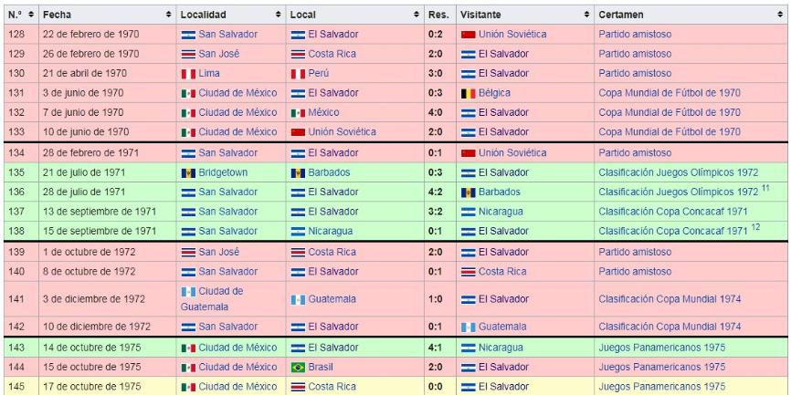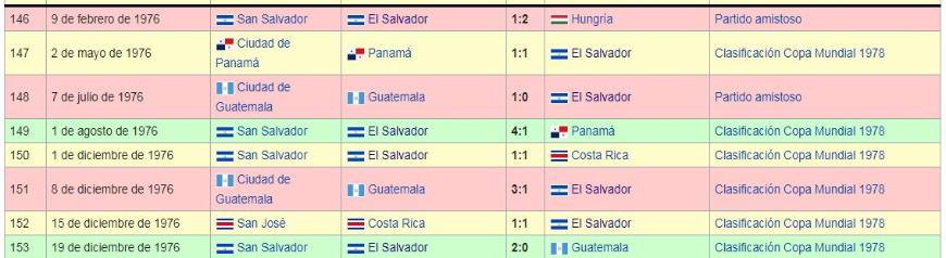 Los Juegos de La Seleccion Nacional de El Salvador: 1970 a 1979