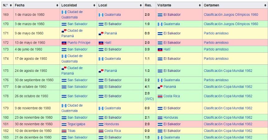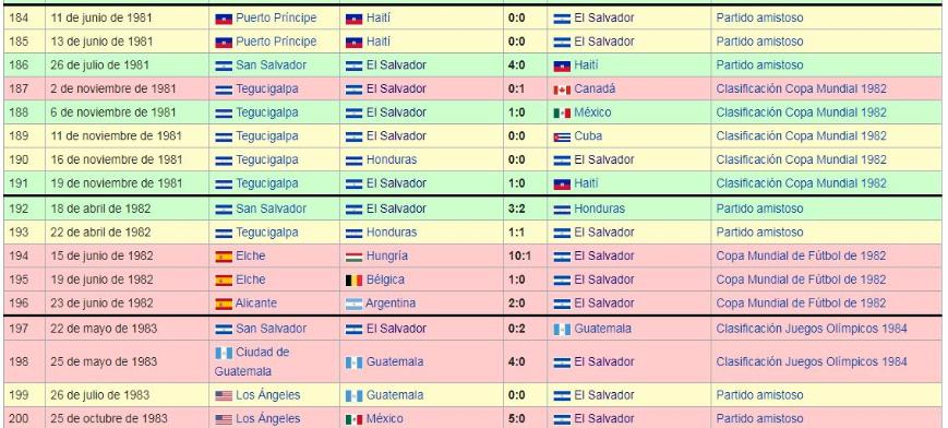 Los Juegos de La Seleccion Nacional de El Salvador: 1980 a 1989