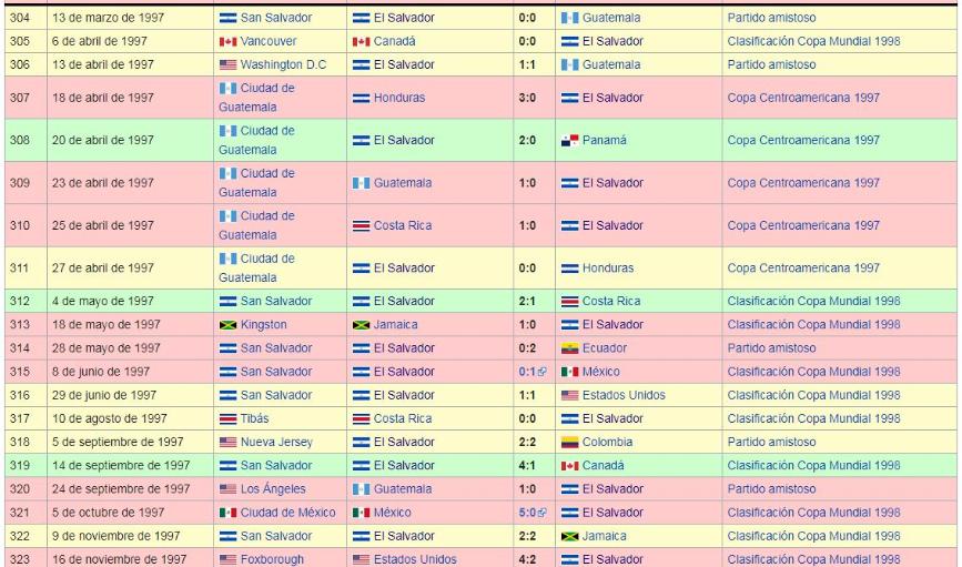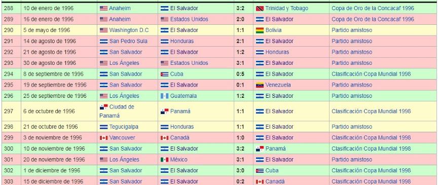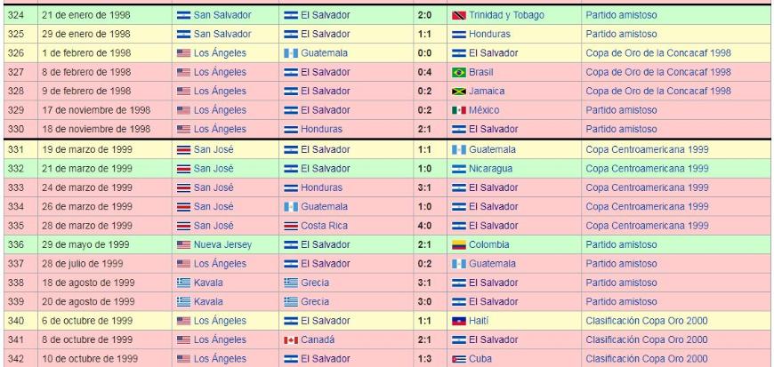 Los Juegos de La Seleccion Nacional de El Salvador: 1990 a 1999