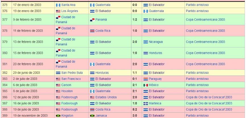 Los Juegos de La Seleccion Nacional de El Salvador: 2000 a 2009