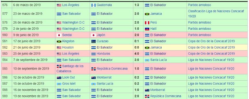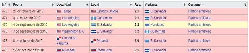 Los Juegos de La Seleccion Nacional de El Salvador: 2010 a 2019