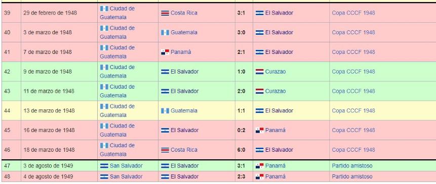 Los Juegos de La Seleccion Nacional de El Salvador: 1940 a 1949