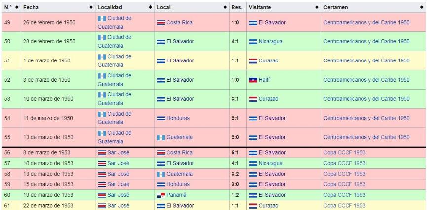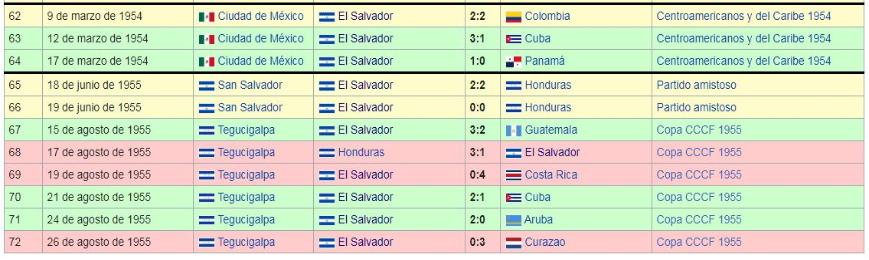 Los Juegos de La Seleccion Nacional de El Salvador: 1950 a 1959