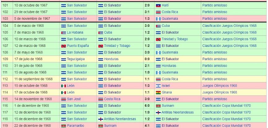 Los Juegos de La Seleccion Nacional de El Salvador: 1960 a 1969