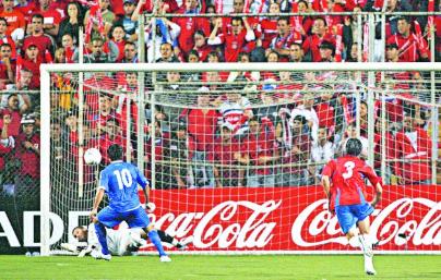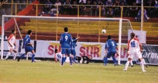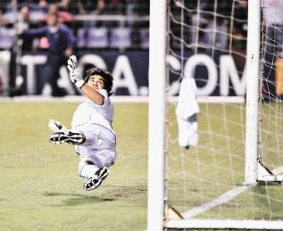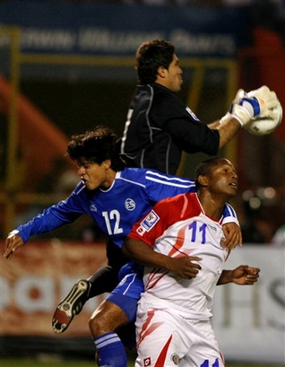 Eliseo Quintanilla (10) ejecuta el tiro pero es rechazado por el arquero costarrisence Ricardo Gonzalez (18).