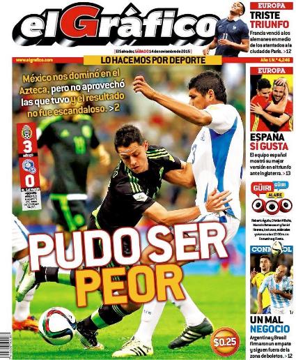 | Viernes 13 de Noviembre del 2015: El Salvador 0 Mexico 3. Estadio Azteca, Ciudad Mexico en Mexico. |