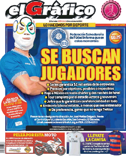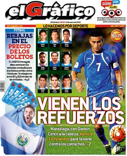 | Viernes 25 de Marzo del 2016: El Salvador 2 Honduras 2. Estadio Cuscatlan, San Salvador en El Salvador. |