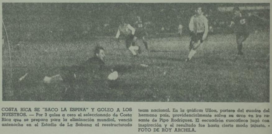 dominada y cruzarsela con maestria a Varela. En el segundo tiempo, se esperaba un cable del doctor Carbajal, quien desde San Salvador estaba investigando