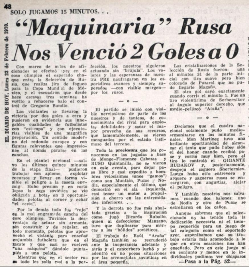 "Ruso" Quintanilla de violento remate, logro el unico gol con que se definio el partido. Teniamos ya cuatro valiosos puntos para la clasificacion de esta