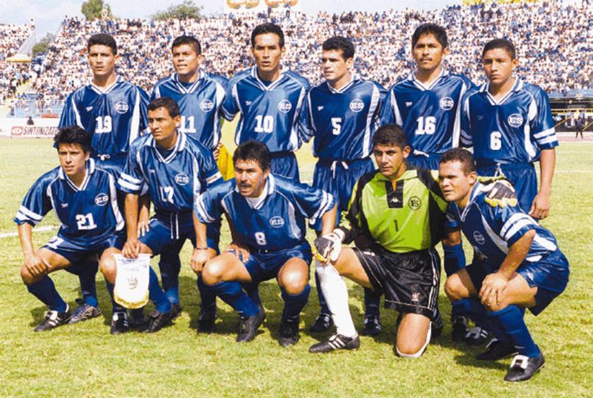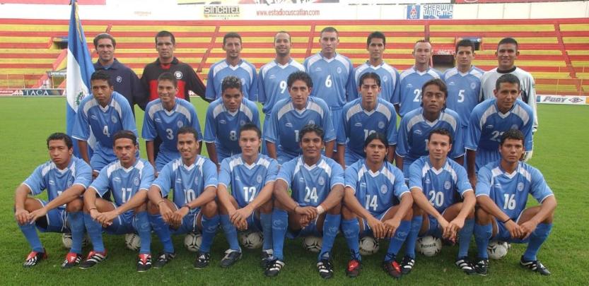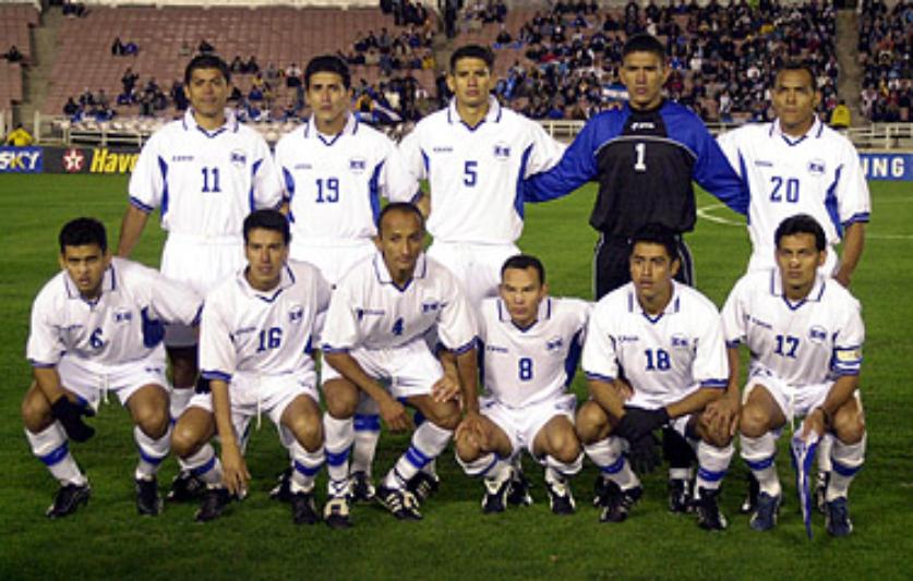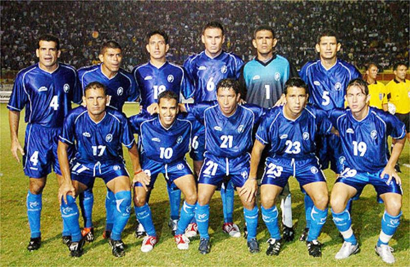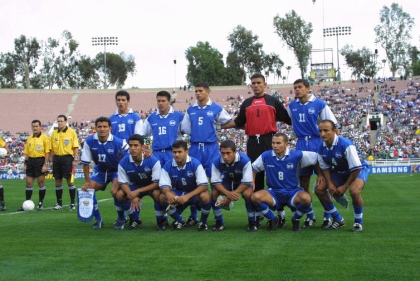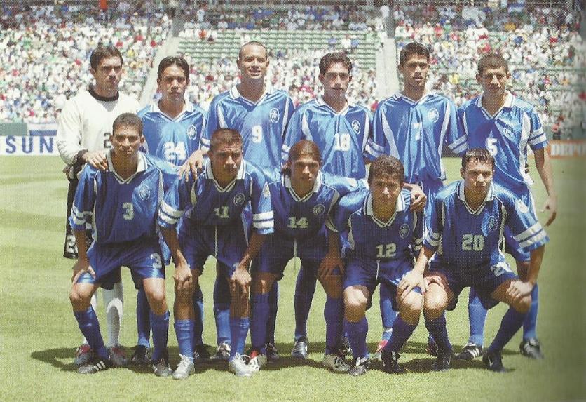 | El 19 de Enero del 2002 en Copa Oro 2002, frente a Mexico en el Rose Bowl. De izquierda a derecha: Elmer Martinez, Adonay Martinez, Victor Velazquez, Santos Rivera y Ronald Cerritos. Abajo: Jorge "El Zarco" Rivera, Oscar Navarro, Bladimir Cubias, Josue Galdamez, Santos Cabrera y Marvin "Perica" Benitez. |