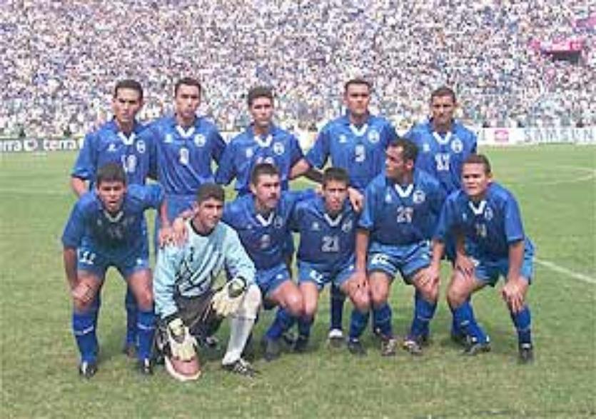 | El 5 de Marzo del 2000 en eliminatoria rumbo a Corea/Japon 2002 frente a Belice. De izquierda a derecha: Elmer Martinez, Ronald Cerritos, Raul Diaz Arce, Mario Guevara, Erbert Burgos y E. Gonzalez. Abajo: Adonay Martinez, Jorge "El Zarco" Rodriguez, Guillermo "Memo" Rivera, Misael Alfaro y Roberto Martinez. |