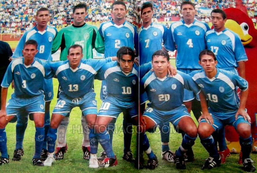 | El 16 de julio del 2000 en eliminatoria rumbo a Corea/Japon 2002 frente a Honduras. Se perdio 2-5. De izquierda a derecha: Raul Diaz Arce, Adonai Martinez, Misael Alfaro, Elmer "pando" Martinez, Alexander Merino y Jorge "zarco" Rodriguez. Abajo: Elias "chilenita" Montes, Mauricio Cienfuegos, Guillermo "memo" Rivera, Carlos Castro "papo" Borja y Roberto Martinez. |