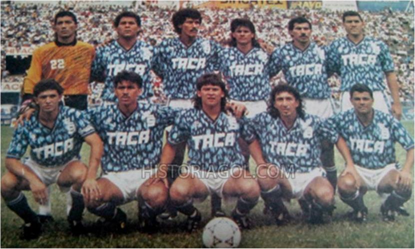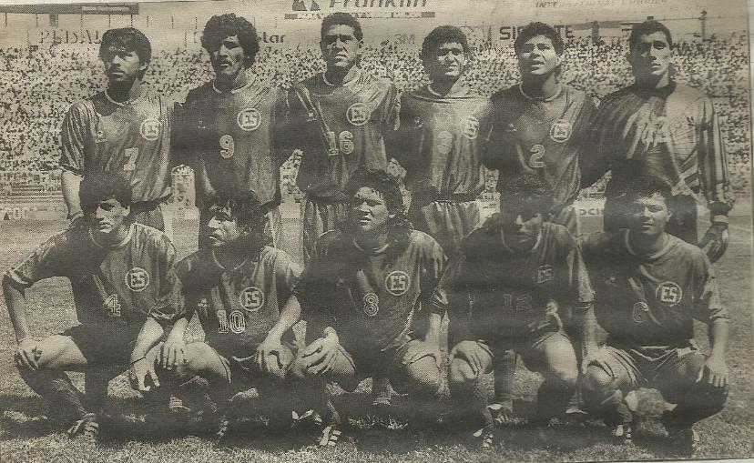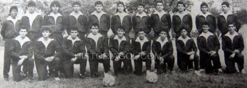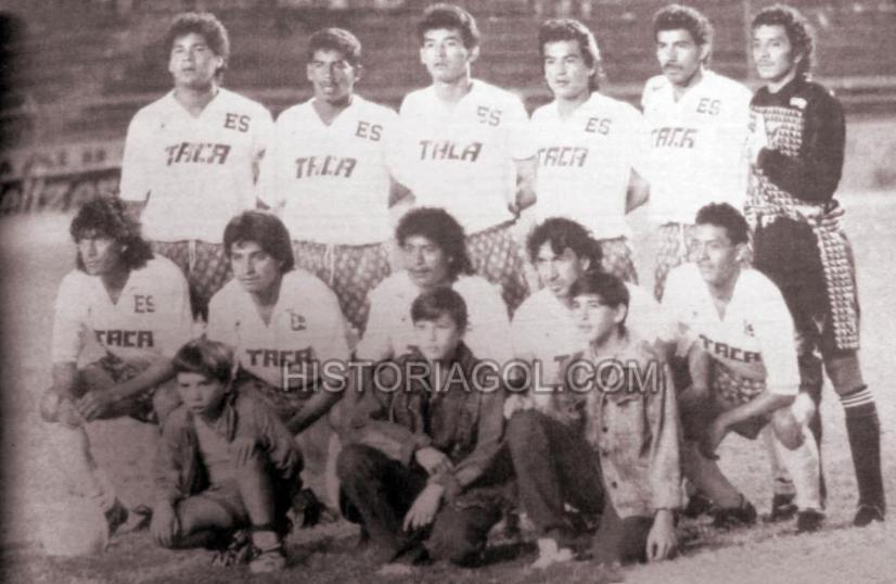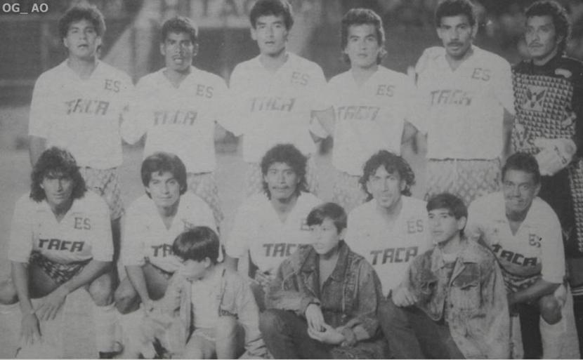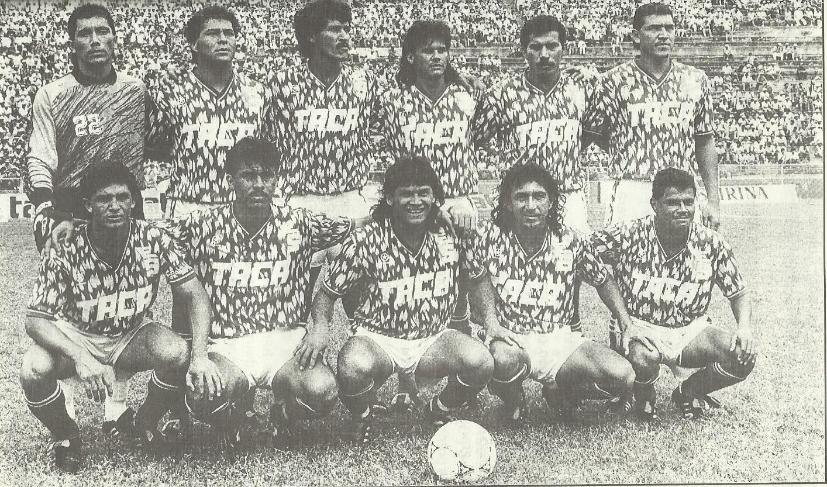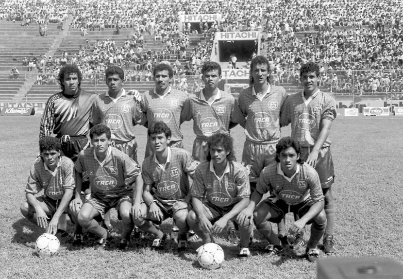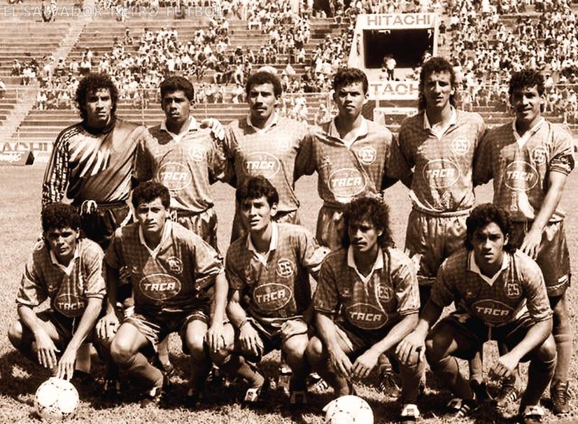 | 1991: De izquierda a derecha: Misael Alfaro, Amilcar Gonzalez, William Renderos Iraheta, Carlos Salvador Salazar, Sergio Ivan Mun`oz, Pedro Vasquez, Jorge "el zarco" Rodriguez, Raul Diaz Arce, Oscar Ulloa, Guillermo Rivera, Adolfo Menendez y Fredy Orellana. Abajo: William Osorio, Jaime Murillo, Sergio Valencia, Miguel Pineda, Ricardo Colorado, Douglas Vidal Jimenez, Oscar Elmilio Martinez y Luis Oscar Lazo. |