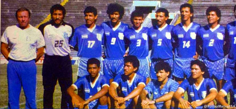 | El 19 de julio de 1992 frente a Nicaragua en Managua por las eliminatorias a la Copa del Mundo '94. Se gano 5-0. De izquierda a derecha: Julio Amilcar Palacios Lozano, Geovany Trigueros, Oscar "lagarto" Ulloa, Jose Alfredo "pigui" Vasquez, Carlos Rivera y Miguel Estrada. Abajo: Jorge "magico" Gonzalez, Mario Meza Mayen, Carlos Castro Borja, Salvador Coreas y Jorge Moran Mojica. |