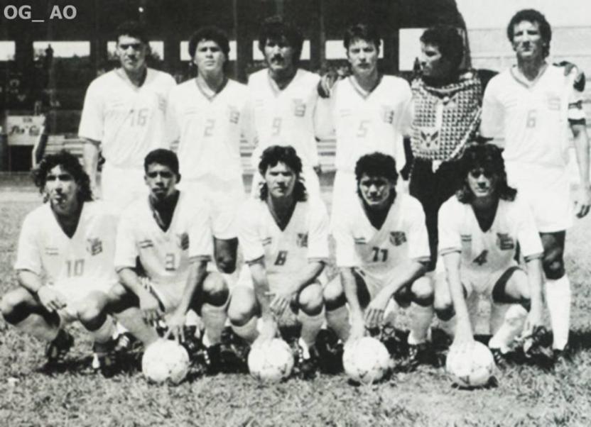 | El 1 de noviembre de 1992 frente a Bermudas en partido por las eliminatorias rumbo a Los Estados Unidos 1994. Se gano 4-1. De izquierda a derecha: Guillermo "memo" Rivera, Oscar "lagarto" Ulloa, Amilcar Palacios Lozano, Leonel Carcamo, Geovany Trigueros y Raul "Superman" Garcia. Abajo: William Osorio, Jorge "Magico" Gonzalez, Castro "papo" Borja, Mauricio Cienfuegos y Jorge Abrego. |