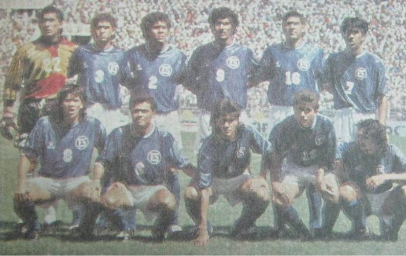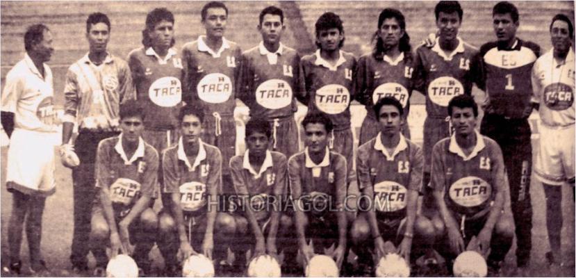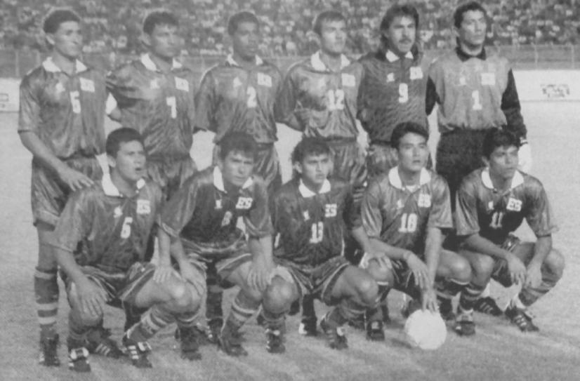 | 1994: De izquierda a derecha: Misael Alfaro, Jorge "zarco" Rodriguez, Nelson Quintanilla, Salvador Portillo, ? y Erick Dawson Prado. Abajo: Marcos Portillo, Julio Santos Navarrete, Ricardo Colorado, Ronald Cerritos y Carlos Mario Joya. |