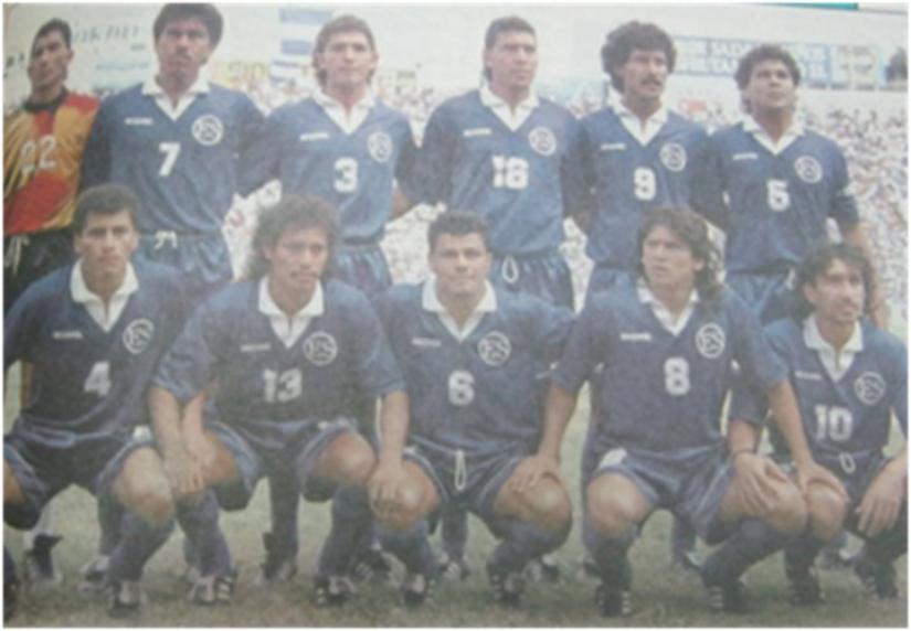 | El 11 de abril de 1992 frente a Canada en partido por las eliminatorias rumbo a Los Estados Unidos 1994. Se perdio 0-2. De izquierda a derecha: Carlos Rivera, Leonel Carcamo Batres, Raul Diaz Arce, Fernando Lazo, Guillermo "memo" Rivera y Geovany Trigueros. Abajo: William Osorio, Carlos Castro "papo" Borja, Jorge "Magico" Gonzalez, Jorge Abrego y Mauricio Cienfuegos. |