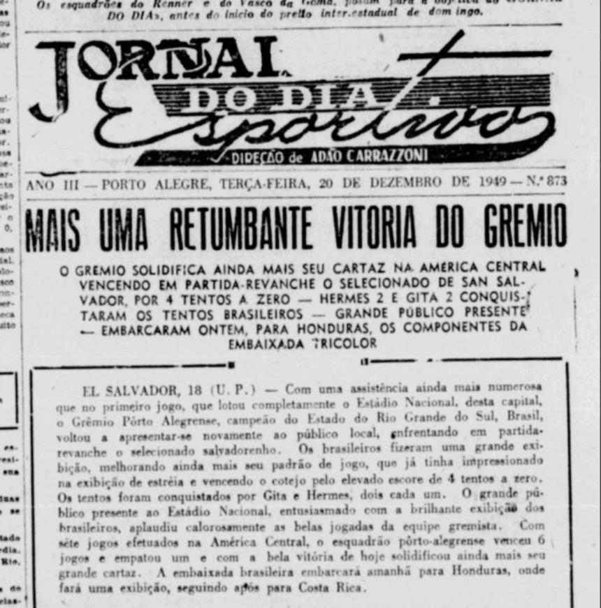 El Salvador vs Gremio Puerto Alegre de Brasil Los 5 juegos amistosos contra el equipo brasilen`o entre 1949 hasta 1983