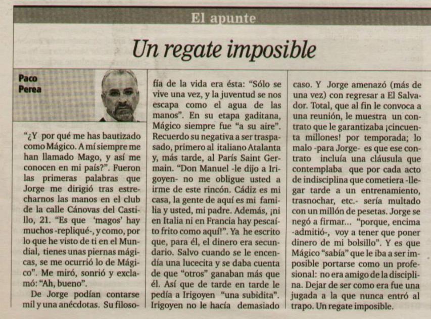 Jugando en La Liga Los numeros de Magico con Cadiz Fueron 6 temporadas. 1983 - 84 1986 - 87 1987 - 88 1988 - 89 1989 - 90 1990 - 91 Magico Gonzalez jugo 151 juegos. 42 Goles anotados. |