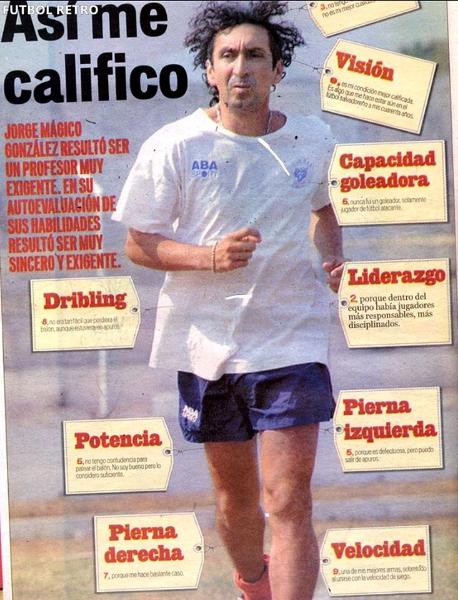 | Simplemente Magico: "Reconzco que no soy un santo, que me gusta la noche y que las ganas de jugar no me las quita ni mi madre. Se que soy un inresponsable y un mal profesional, y que pueda que este desaprovechando la oportunidad de mi vida. Lo se, pero tengo una tonteria en el coco: no me gusta tomarme el futbol como un trabajo. Si lo hiciera no seria yo. Solo juego por divertirme." - 1984 - |