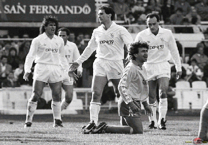Magico jugo nuevamente en Cadiz. En septiembre de 1986 regresa el Magico a Cadiz. Fueron 5 temporadas mas: 1986 hasta 1990-91 jugando para Cadiz C.F. en La Liga: Magico Gonzalez jugo 120 juegos. Anoto 28 goles. Magico jugo su ultimo juego con Cadiz: el 21 de octubre de 1990 frente a Real Betis el partido termino 1-2. |