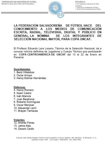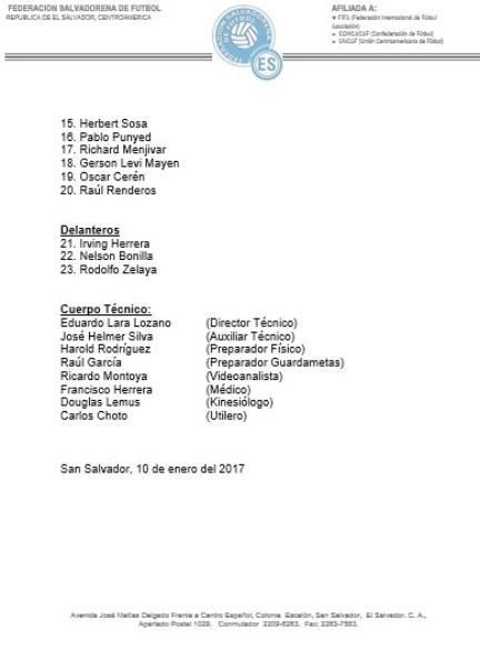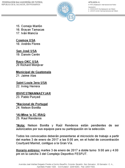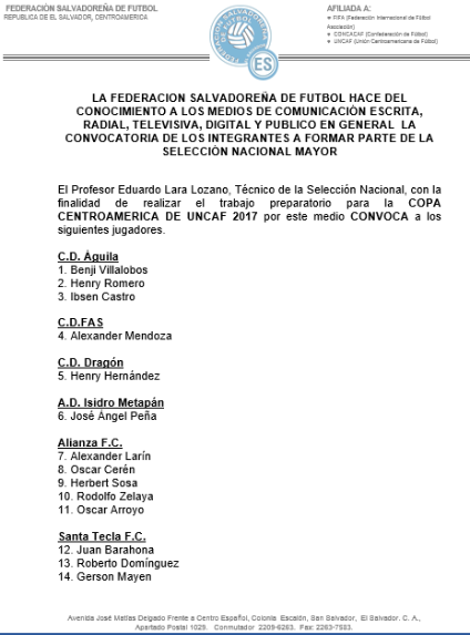 que estaran en UNCAF 2017. A ultima hora incluye a Nelson Bonilla y Henry